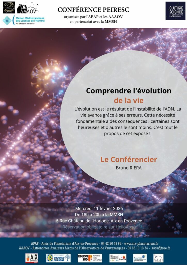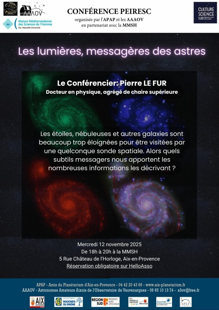 Nous sommes ravis de vous présenter notre cycle de conférences mensuelles, en partenariat avec les AAAOV, Astronomes Amateurs Aixois de l’Observatoire de Vauvenargues; et la MMSH, Maison Méditerranée des Sciences de l’Homme :